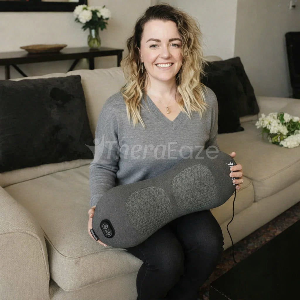 This 3-in-1pillow provides relaxing lumbar support. Powerful massage and heat options. I use it nightly before bed to help relieve tension from the day.